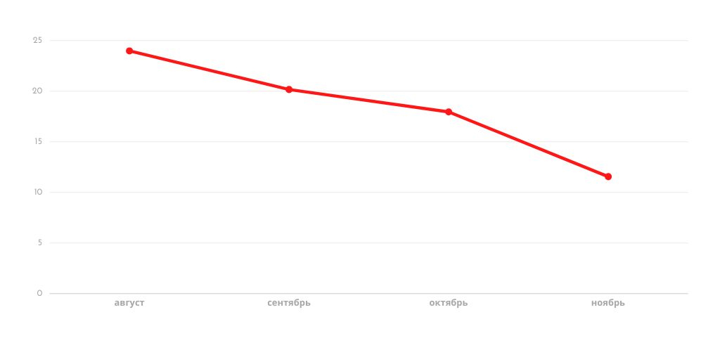 Стоимость СРА снизилась на 33%. Следовательно, не повышая бюджет, мы получили рост конверсий, снизив их стоимость. Минусация некачественных площадок позволила снизить отказы с 29% до 25%.
